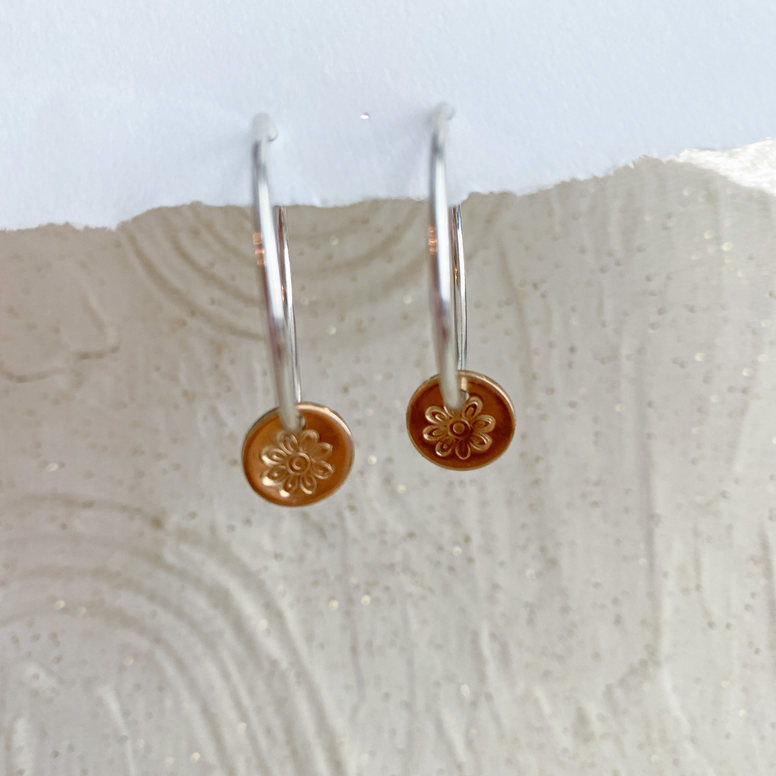 Made in sterling silver, these classic earrings have a flower pendant that is made in 14k gold filled; you can remove it and put it on as many times as you want; you can wear them alone to give it a classic touch, if you want it a little more fun and give it a touch staff; This flower pendant is really beautiful and eye-catching. These earrings are made in our manusilu jewelry workshop that is established in the city of Draper UT, each piece comes in its case to avoid damage and keep it safe until it reaches your hands.